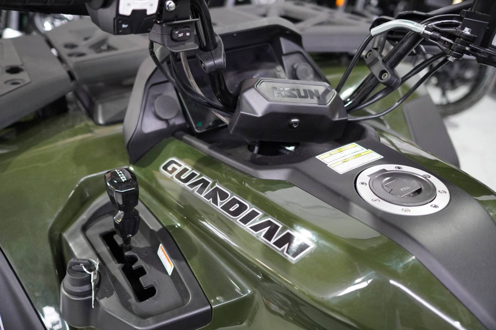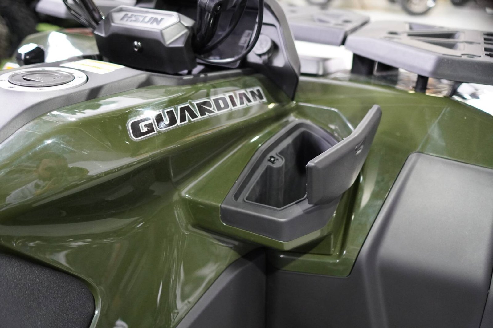 O Hisun Guardian 600 Chassi Longo está projetado para aqueles que procuram combinar potência e tecnologia com conforto para toda a família. Seu chassi estendido proporciona mais espaço e estabilidade, ideal para viajar com acompanhante graças ao encosto de série e à homologação para duas vagas. Equipado com direção assistida eletrônica (EPS), manobrar em qualquer terreno é mais fácil e seguro